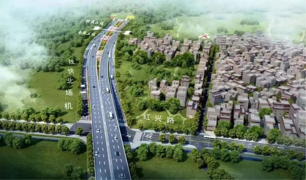 跨越红兴路后,全线以高架桥形式沿规划的香海北路、新伟街、新青二路延伸;
