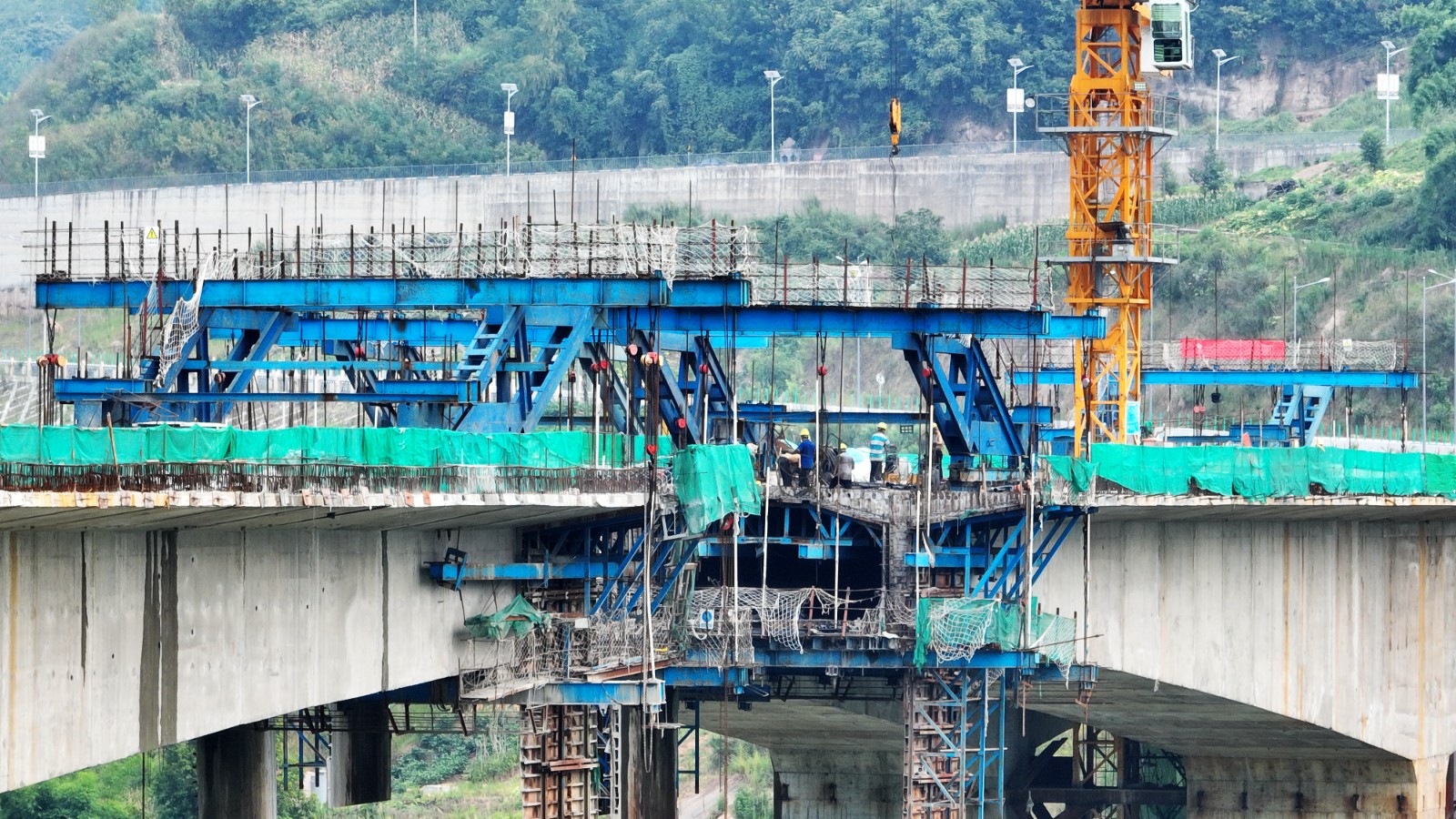据悉,忠县东溪河大桥总长440米,为预应力混凝土连续钢构桥,是忠县重大交通建设项目忠信大道的重要控制性工程之一。目前,该大桥正在进行悬臂浇筑施工,桥梁右幅预计8月底可实现合龙。