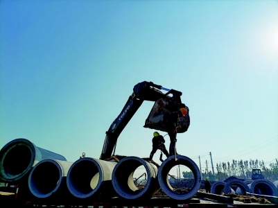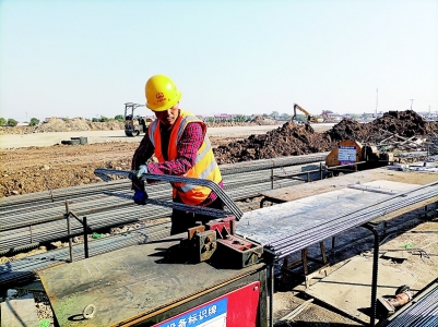 在该项目一标段,挖掘机、打孔机、铲车、罐车等30余台机械设备来回穿梭,近200名工人分工明确,各司其职,填埋管沟、平整路基等工作有序推进;道路两侧,巨型塔机长臂挥舞,挖掘机、运输车轰隆作响。已经完工的承台、墩身、桥台浑然一体,高高耸立。随着夜幕逐渐降临,施工围挡内仍灯火通明,一派忙碌景象。“截至18日,我们已经全部完成了96根桩基、22个承台、18个墩身和4个桥台的施工,雨水管线完成70%,污水管线完成90%,铺设水稳100多米,部分主路已经开始安装路缘石。”现场施工负责人介绍,目前,项目部机械设备饱和式投入,将全力保障施工进度按时间节点推进。